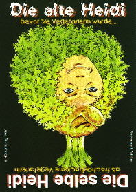 Heidipostkarte (zum wenden - bevor sie Vegetarierin wurde / als frischgebackene Vegetarierin)